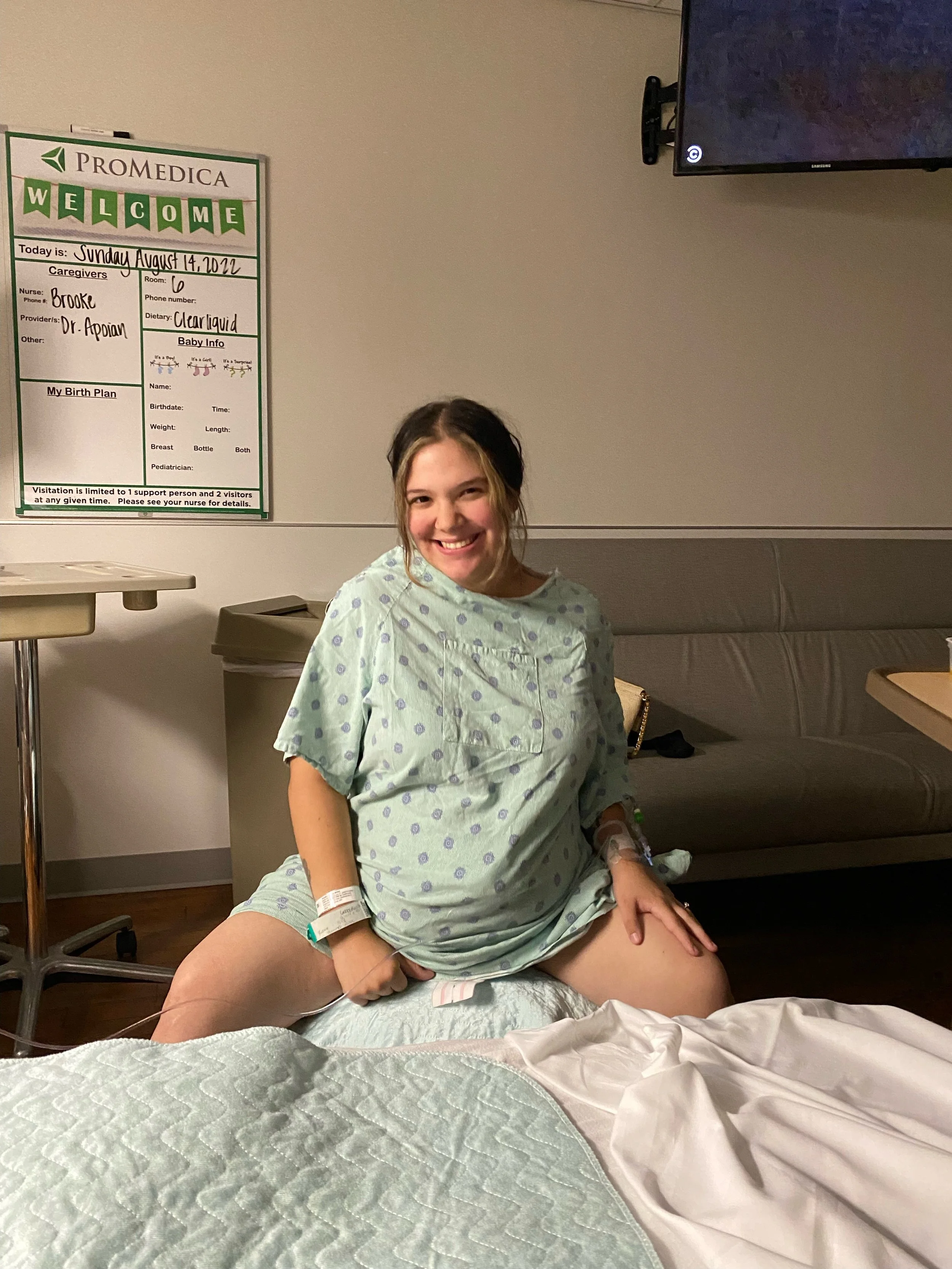 After being induced into labor for my first son's birth, I really had no idea what spontaneous early labor felt like. The weeks pass by so fast when you have a toddler, and I was creeping up to the 40-week mark. I was feeling more and more pressure in my pelvic area while I was walking, and contractions when I laid down for the night. I laid awake for several nights before going into labor, counting contractions, exhausting myself and getting frustrated. At 37 weeks and 6 days I was up on and off all night AGAIN. I knew something was going on, but I was so sleepy from the weekend with my toddler that I decided to just try to sleep through the contractions. That morning I was just planning on continuing my day and spending time with my family. The Henry County Fair was going on -- all the amazing food and cute animals! Perfect distraction! So, my mom and I took my son. We would walk for a couple minutes, then I would have a contraction. I knew this was real. We continued to look at the horses, go on rides, and get some yummy treats. I would brace myself on the horse stall, or wherever I was standing, and take deep breaths, listening to my body and what it needed at the time. Once I got home, I knew that things were progressing from all of our walking. I told my husband to get ready to leave for the hospital. We got to Toledo Promedica around 4 pm that day, and I went right for the birth ball. I was doing so many movements to get the baby in the right place, - I wanted to be more involved with this birth versus Oaklee’s. My husband did back counter pressure and was so loving through the contractions. They did a cervical exam and I was 6 cm dilated during this time. I continued to move and do what I needed to do to cope.