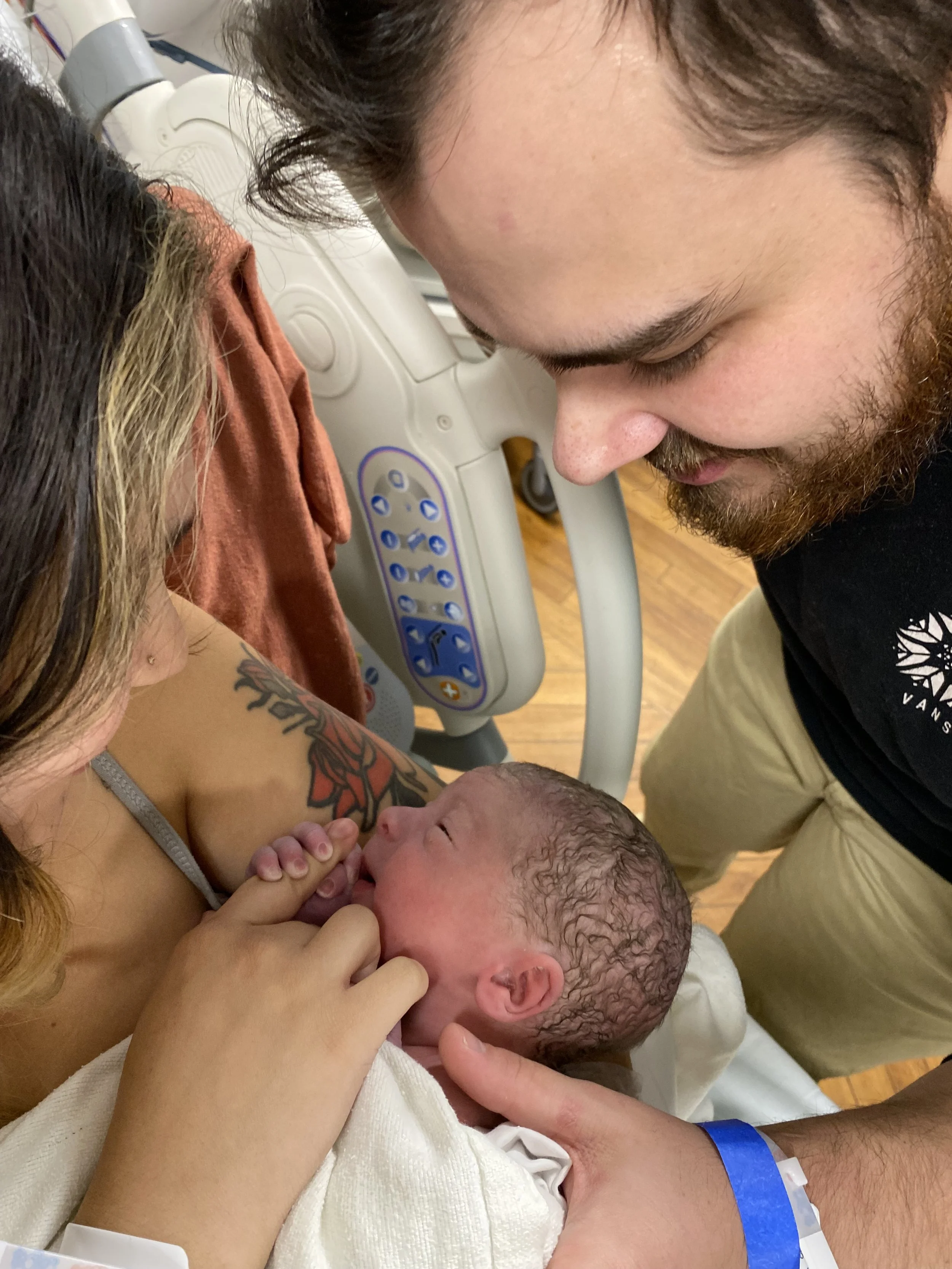 Pushing this time was so much quicker and easier than with Oaklee. I had an amazing OB, Dr. Apoian, who was so gentle with her words and how she treated me. We had music playing our entire time at the hospital from a curated playlist, and I had a specific birth song I wanted for his entrance into the world -- Hummingbird by Maren Morris. I softly whispered “this is the song” to myself, and I will never forget the doctor saying “make it this song” and after one big push, Atlas was born. Very quickly the team stepped in to give him some extra support, as his breathing wasn't great. He needed some help from the neonatal team using PPV (positive pressure ventilation). For a little while, I was incredibly concerned and wanted to be by his side. My husband was with him while the doctor held my hand and talked about what was happening. After 30 minutes, he was finally able to do skin to skin with his mama. This little boy was a natural at breastfeeding, and wanted to latch on quickly. After Oaklee not wanting to nurse (and me being less educated about breastfeeding) this made my mama heart so full. Finally this sweet boy was here with me, earth-side.